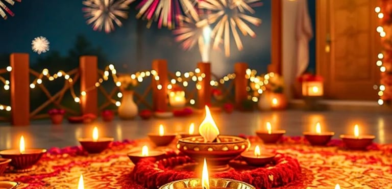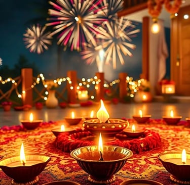 Unity & Joy: Families come together to celebrate with diyas, sweets, and gifts.