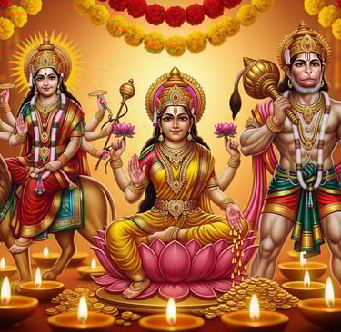 Dhanteras, the first day of Diwali, is a festival of wealth and prosperity. The name itself comes from "Dhan" (wealth) and "Teras" (the thirteenth day). It's a day when Hindus worship Goddess Lakshmi and Lord Kubera to attract good fortune. It's considered highly auspicious to buy gold, silver, or new utensils on this day.